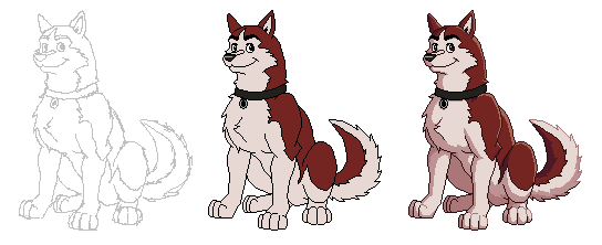 I haven't done any pixelart in forever, suddenly got the drive to open up Paint and do a doggo and hey here we go, came up with Kodi, partially inspired by the relatively small amount of fanart there is of him around x3