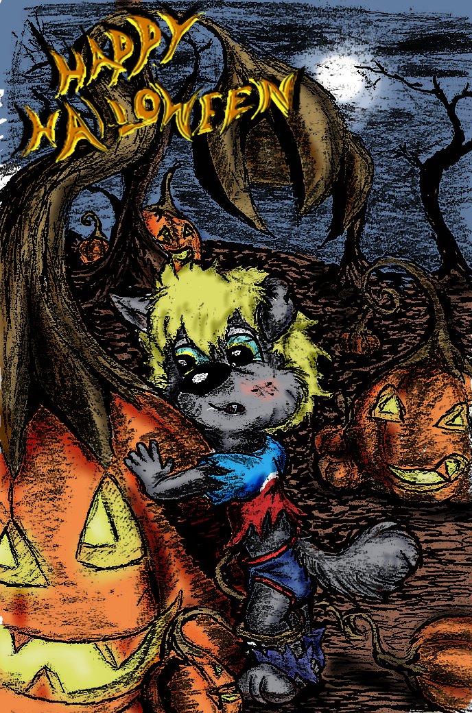 Pup thought it would be an easy fight to go out an fight monsters on halloween. To bad the haunted pumpkin patch was much stronger than i thought. Hope i can escape.