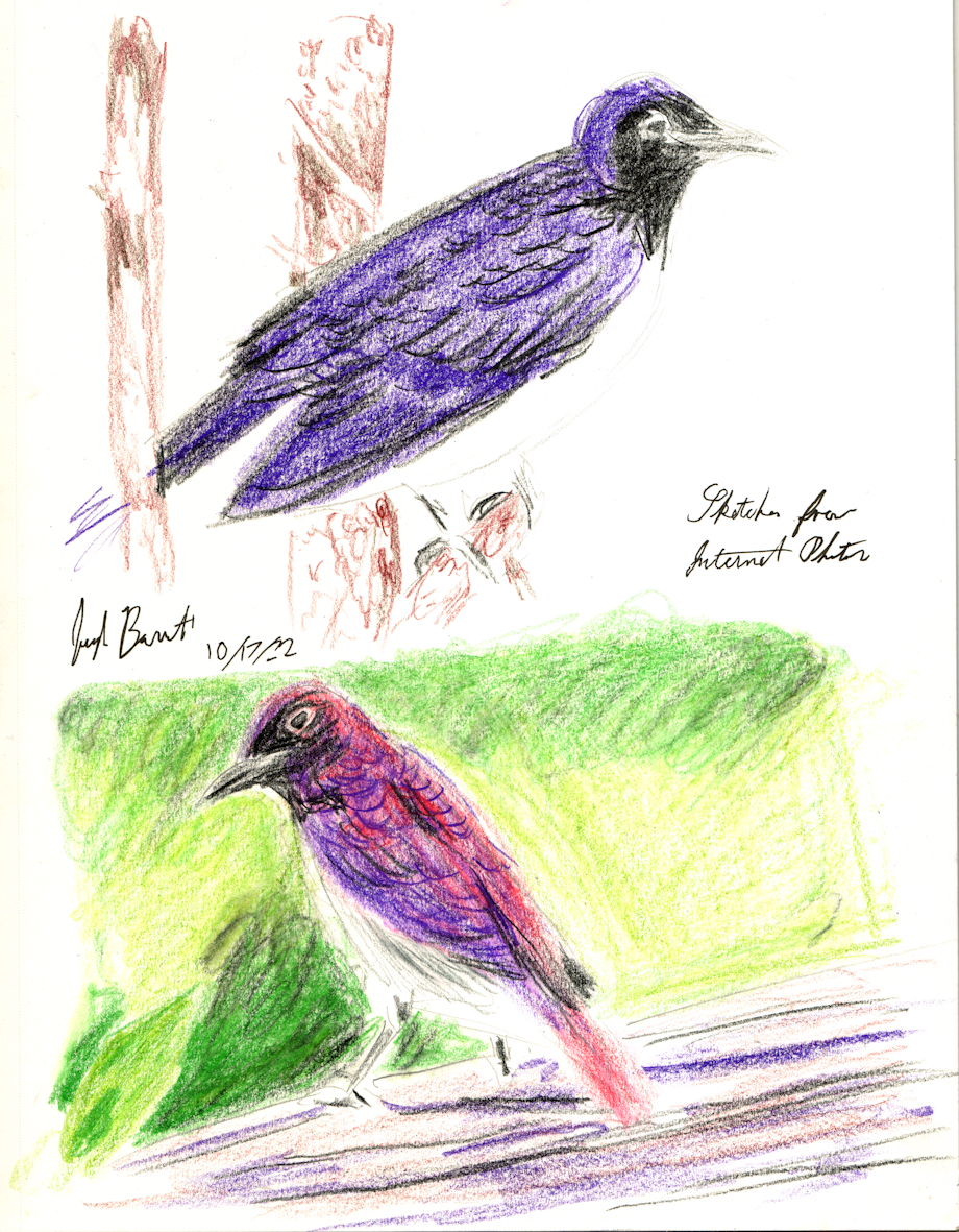 I looked up "purple birds" on the Internet, and drew these sketches form a couple of photos I saw.