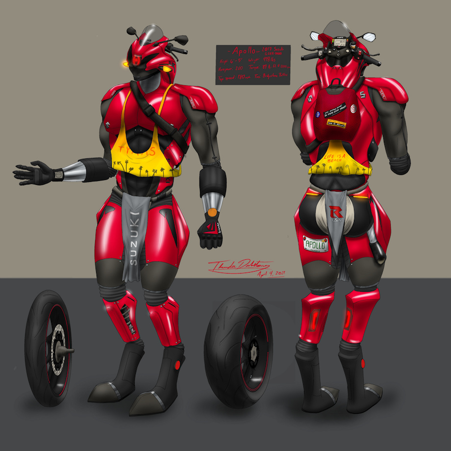 Apollo is a 2017 Suzuki GSX R-1000 and the character and art are both © to me.