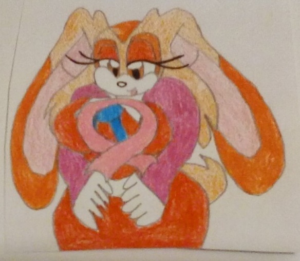 For Breast Cancer Awareness month. Older Cream holds a pink ribbon.