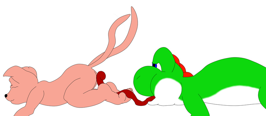 Some random green Yoshi decides to just pounce Tails and start licking/ going after his feet and rear. Tails resisted at first but when the pleasure became too much for him to resist, he gave up fighting. The Yoshi knowing this just lays in a good position and let his tongue do the work. I guess Tails will realize sooner or later that his rear and soles are bare when its done and over (or furless all together if you prefer the other pic).