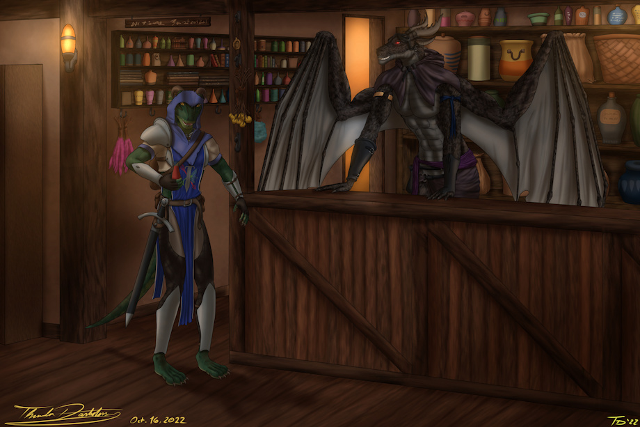 After having consumed the red liquid within the vial, Zeema feels as though he's got a bit of an upset stomach. Not too surprising given the contents of the vial didn't taste like cherries or any other red berry. In fact, it had more of the flavor of uncooked red meat, scarmish root, copper and... undertones of semen? Whatever the case, it's probably not best he ask what went into it.