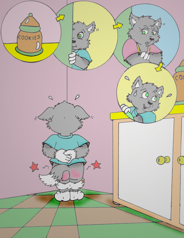 i lift up your shirt and your tummy again and i untape your diaper and use it to wipe you down then i gently lift your legs tickling your feet just a lil bit to see you giggle and i slide the wet diaper from underneath your bottom i use a wipe to clean your lower area then i put the clean diaper underneath you powder you up and tape your diaper there you go ^.^