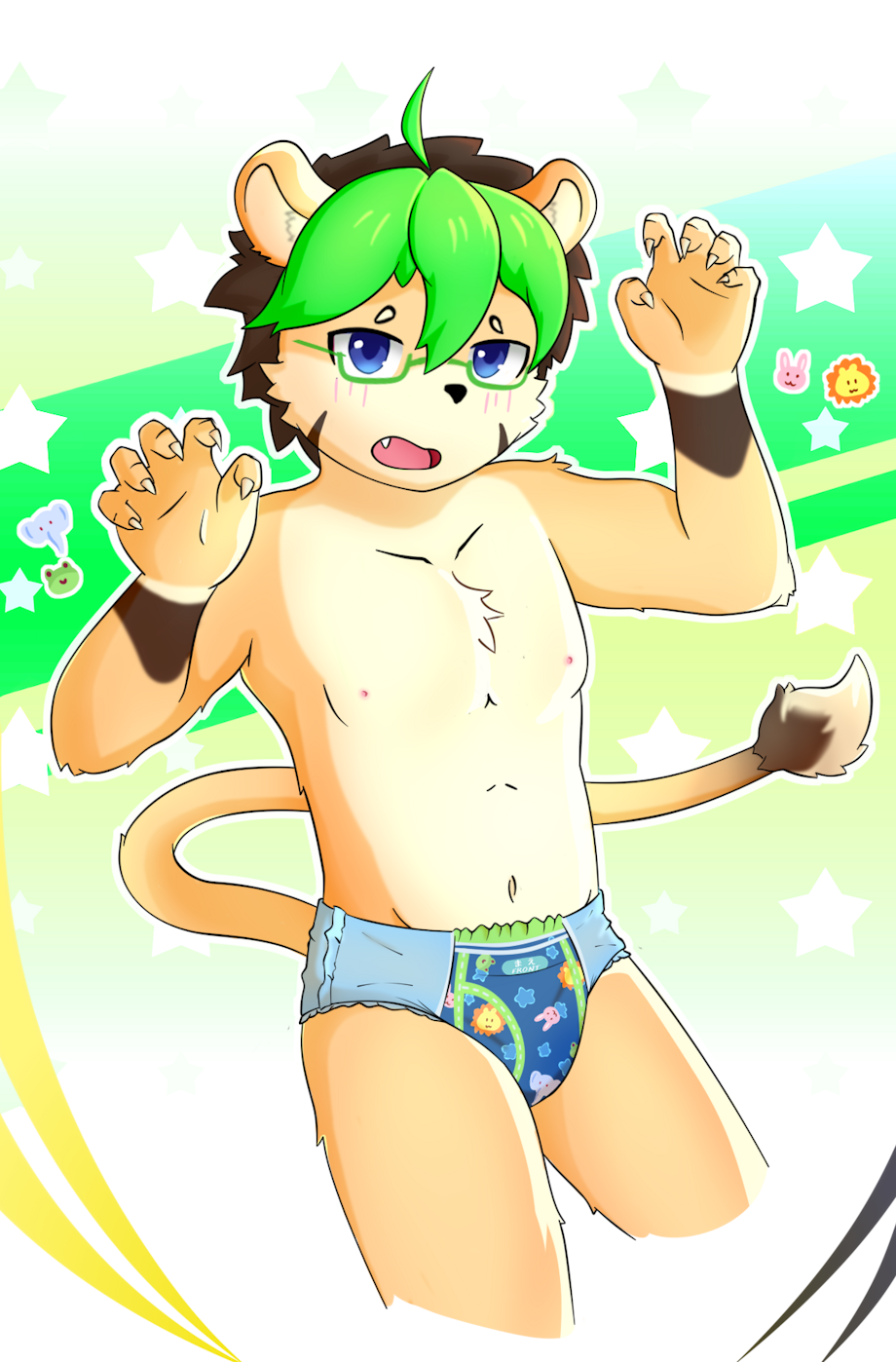 Essentially he's just a naive cute-thing-loving dork, and somewhat of a softie. He loves cute kiddy things but very self conscious about it, fearing people would find out. Even though most days, he finds it hard to not go around with something cute by his side so he usually sneak something cute with him, most of the time this item would be a kiddy patterned undie (or you know, wink wink actually no, its not diaper. but pull-up) He's actively trying to keep up his badass image without knowing that every single one of his close friends already knows about his tendency for cute stuff, because he actually lets the act slip easily if any adorable thing catches his eyes, and he's not that good of an actor like he thinks.