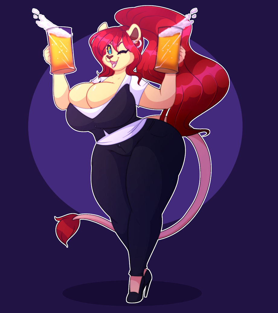 Hissa in her official outfit as a barmaid at The Belly Joyful resto-bar. Although her outfit gives a professional look, she allows herself to highlight her chest, which overflows a little from her outfit, to have fun turning heads at her work, despite her age. But despite this, she is an excellent barmaid, who takes pleasure in serving these customers, has prepared succulent beverages and listens attentively to the problems of customers who confides in her. Of course, she does not do this alone and works with her colleague, Rozathias, always as serious, helps to serve other customers well. Even if sometimes, Hissa likes to tease her colleague for removing his stuck and serious expression. XP