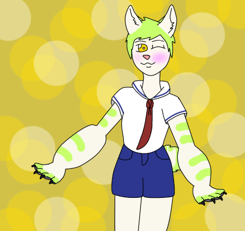 He is very shy about his looks therefore he is often seen blushing or hiding his face with his paws. Once you get to know him he is very nice & sweet & he loves his friends <3
