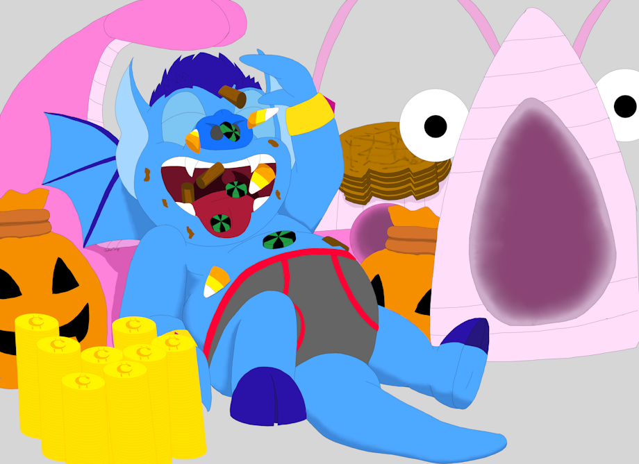 So after a bit of embarrassment, turns out wearing a weird crustacean costume does manage to net little Imp a good Halloween haul. I think he looks quite happy, don't you?