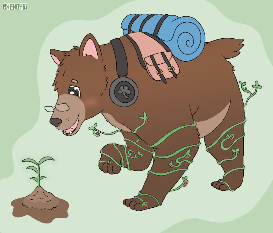A magical bear is excited to see his plant grow! For @BearwynTV - one of the first art pieces I've ever done was for him many years ago, thought it'd be nice to see my progress since then! ...still can't draw bears very well!