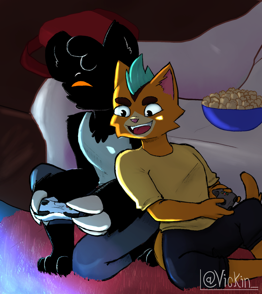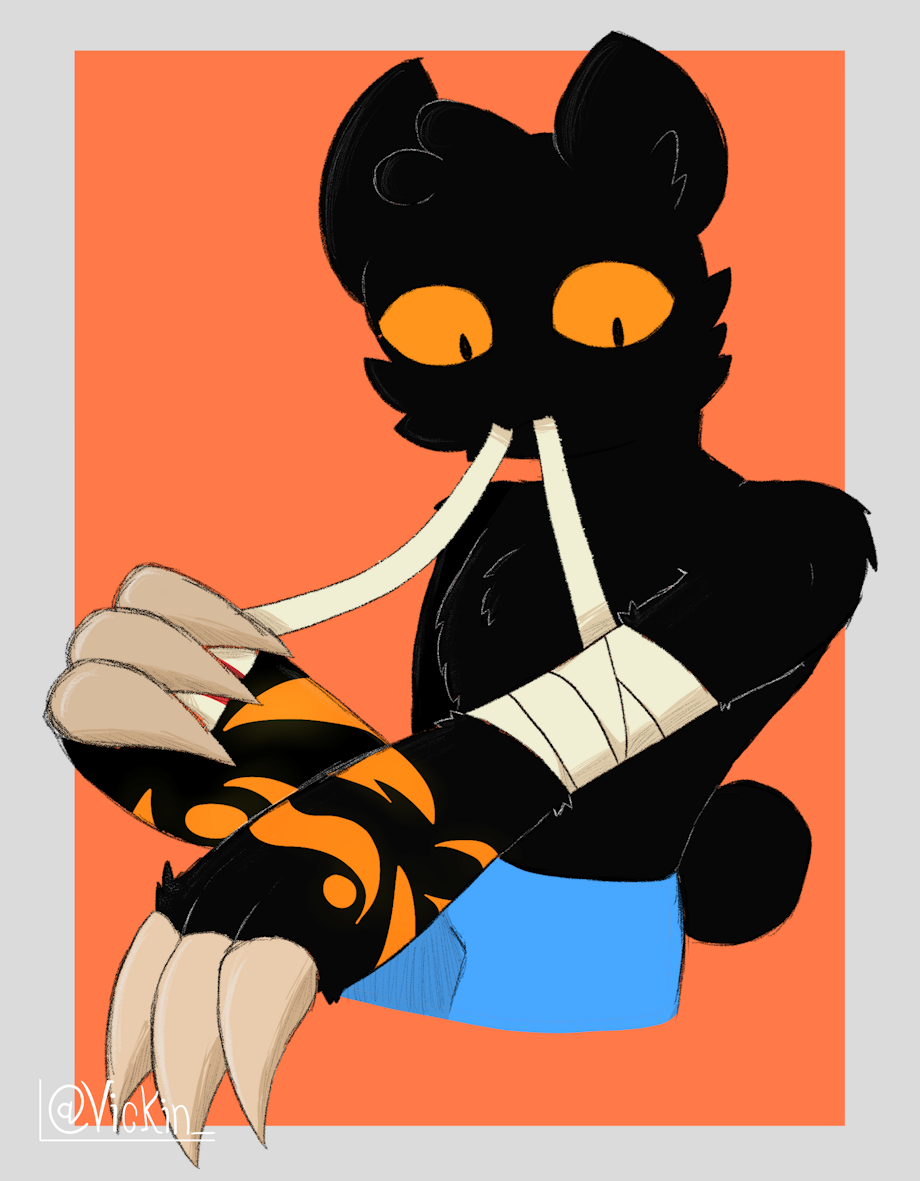 An oc of mine playing with lil´Cato (and wrapping himself with bandages)