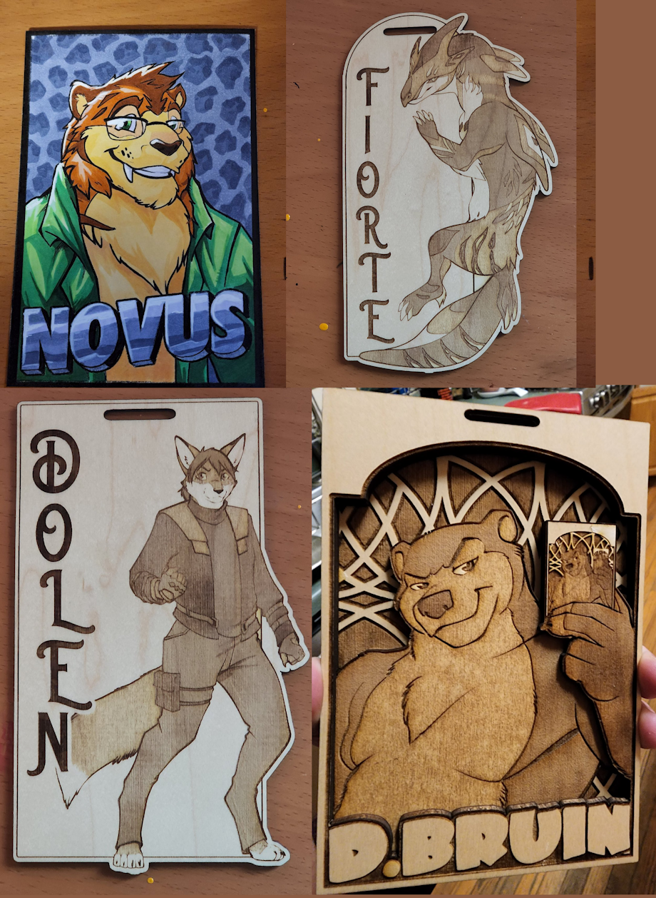 Want a new badge for MFF? I'm now open! I'm taking orders for traditional as well as 2D and 3D wood badges for pickup at my table at this year's Midwest Furfest.