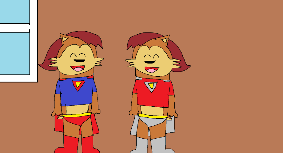 Sally Acorn, as Super Squirrel, with a player two color swap of herself inspired by the Superman arcade game from Taito