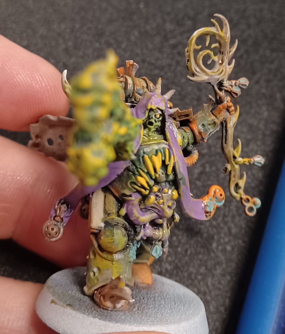 Nurgle bless all. Here we see my Malignant Plaguecaster Khōplŭnd calling forth his patron's wonders. I am glad to be able to paint again.