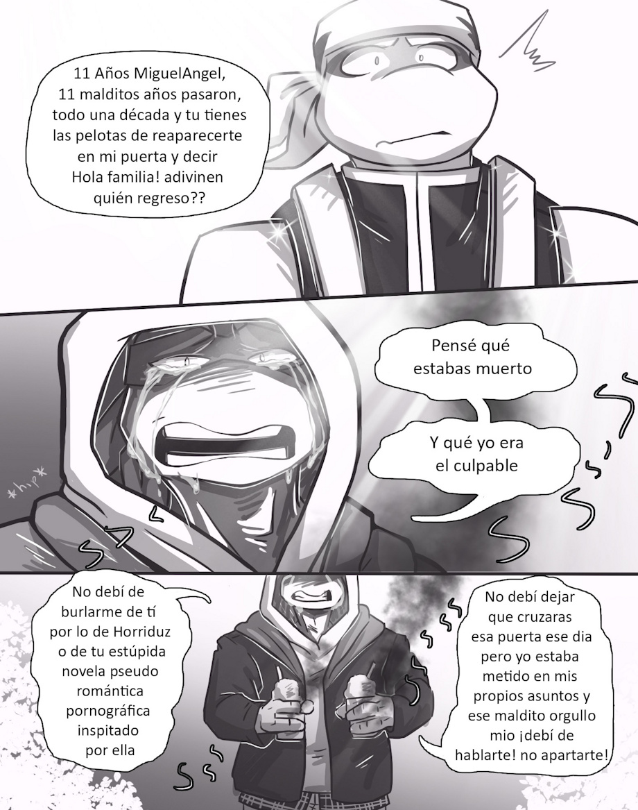 Characters: Mikey, Raphael, Shadow and Hiroto (Casey and Karai's child) and triceratons: Madrox and Tisius (both OCs) and former commander T’Zirk (from Mirage); Helen, Remy and Santiago (Mikey’s childs, my OC but canon too???)