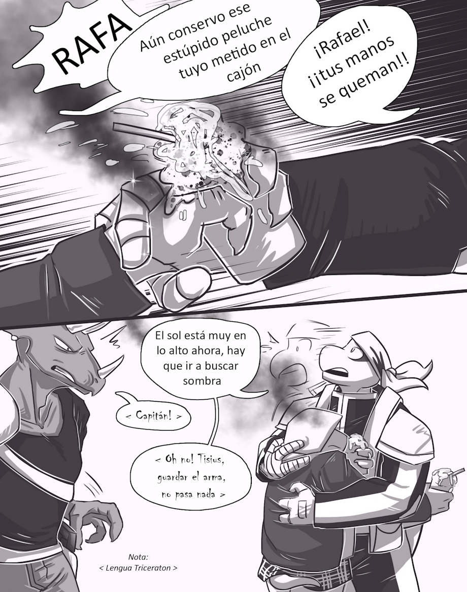 Characters: Mikey, Raphael, Shadow and Hiroto (Casey and Karai's child) and triceratons: Madrox and Tisius (both OCs) and former commander T’Zirk (from Mirage); Helen, Remy and Santiago (Mikey’s childs, my OC but canon too???)