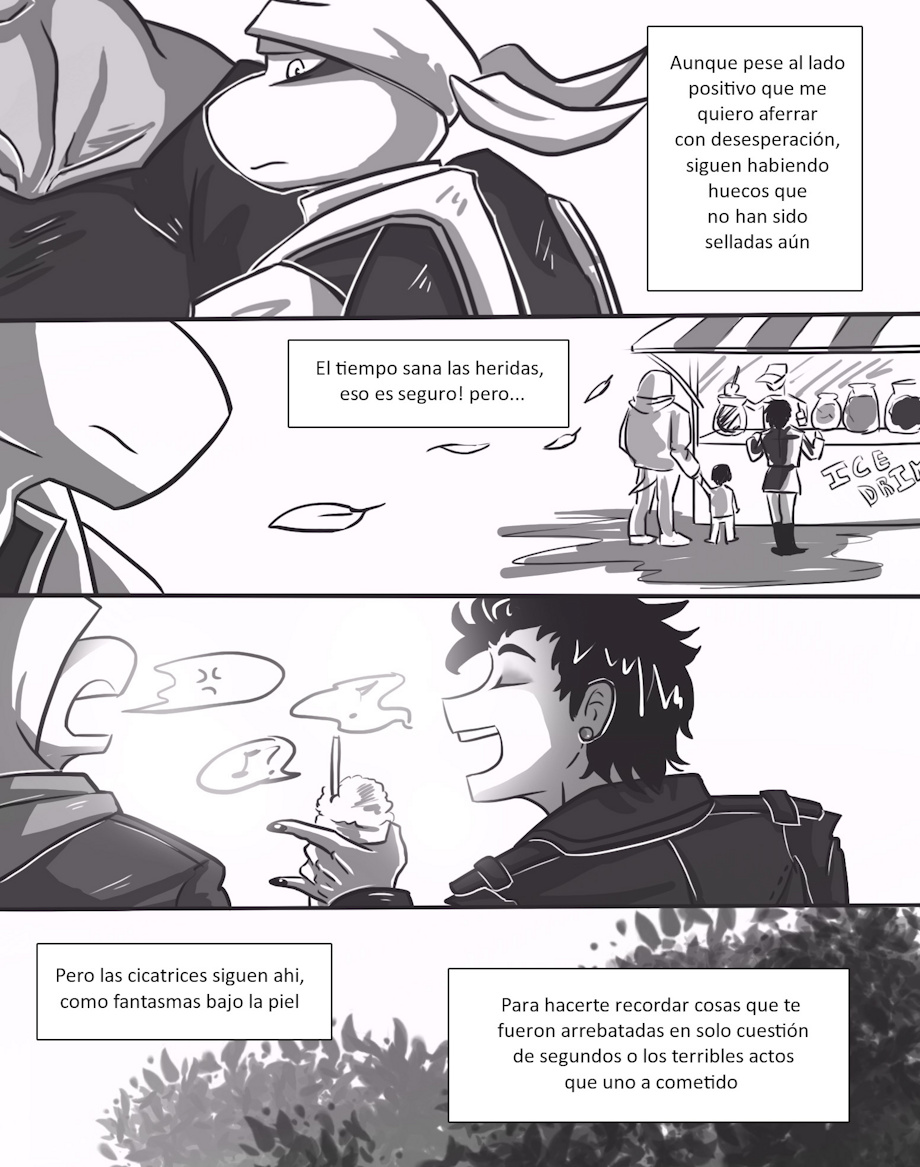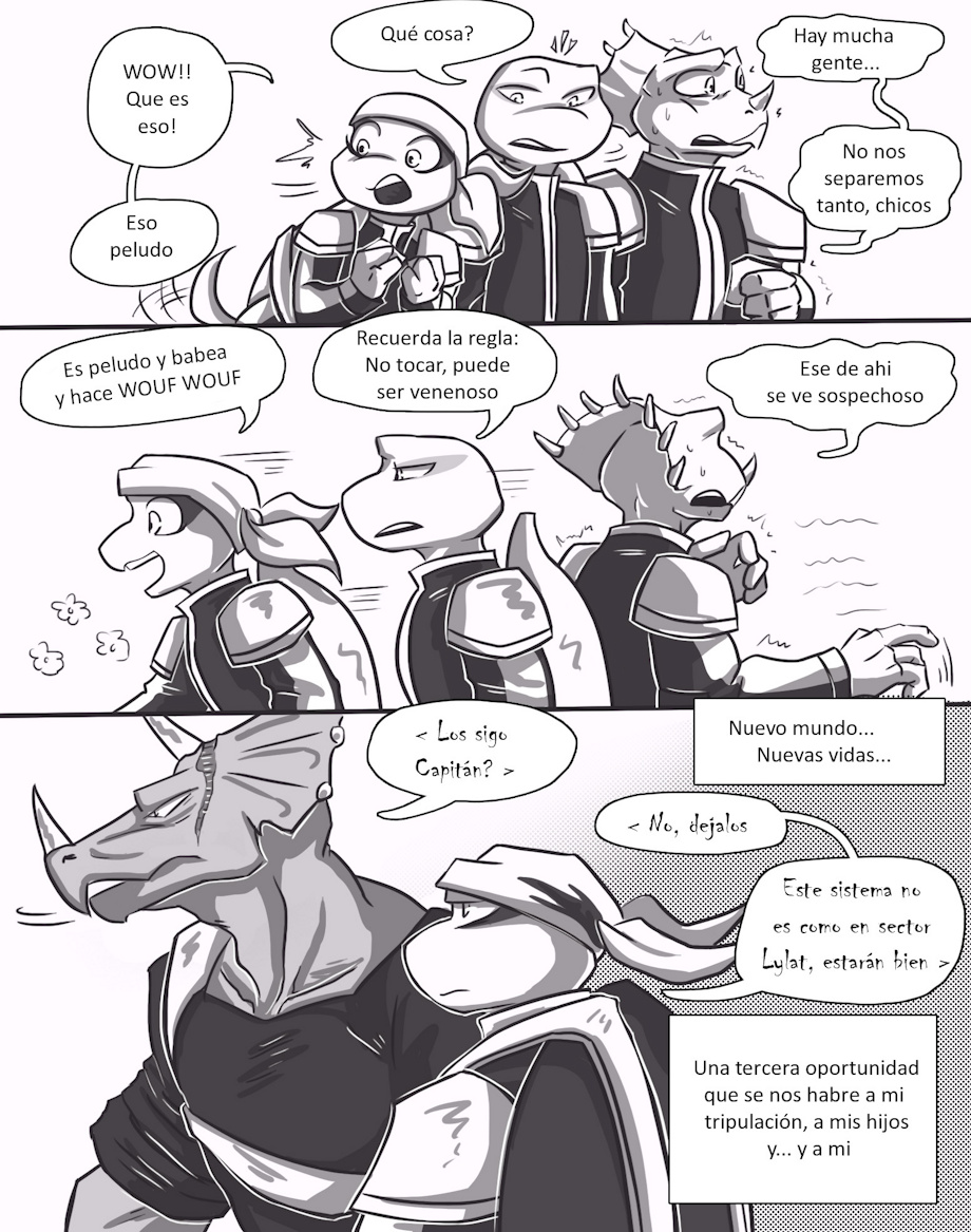 Characters: Mikey, Raphael, Shadow and Hiroto (Casey and Karai's child) and triceratons: Madrox and Tisius (both OCs) and former commander T’Zirk (from Mirage); Helen, Remy and Santiago (Mikey’s childs, my OC but canon too???)