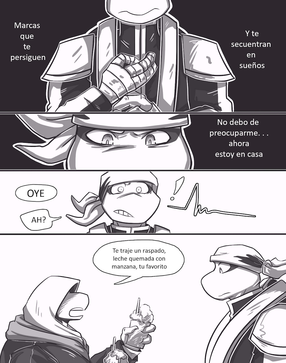 Characters: Mikey, Raphael, Shadow and Hiroto (Casey and Karai's child) and triceratons: Madrox and Tisius (both OCs) and former commander T’Zirk (from Mirage); Helen, Remy and Santiago (Mikey’s childs, my OC but canon too???)