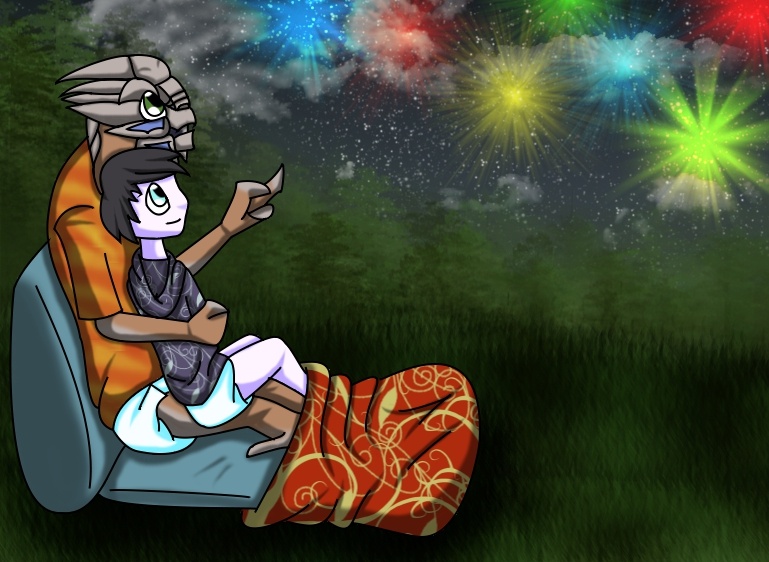 Caleb now lives on the Citadel having little else to go. He's found work on the Citadel as a body guard for one person or another. Since having moved there he's had more interaction with aliens than he previously had his entire life. Among them a Turian around the same age as him named Sanvaron Dakeru. Sanvoran had at one time been an Administrative Clerk for C-Sect but now runs a fairly profitable shot which was how the two met. Caleb has had issues with his continence since the installation of his biotic implant as a child. The issues fluctuate as he gets flares from the implant. This has been one embarrassing secret which has followed him around and did earn him teasing from peers. Sharing a common problem he quickly became friends with Sanvoran on the Citadel and is considering joining C-Sect rather than continue his independent work.
