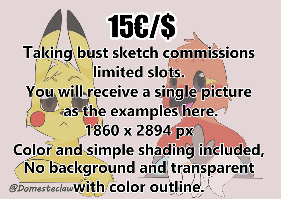 Im oppening commissions at 15€/$ fixed price to celebrate the end of the year, i know, its early, but Idon´t want to get overwhelm and i guarantee that all commissions will be delivered in a week at max (from receipt of payment)