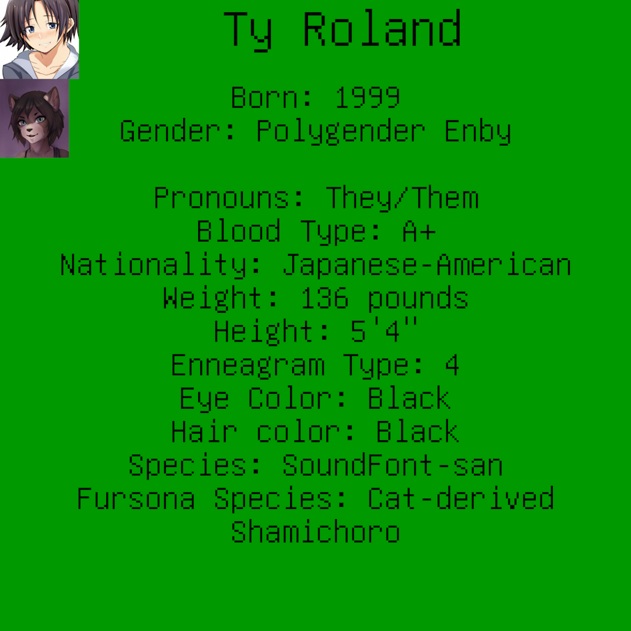 This is a sona consisting of an anthropomorphic soundbank, with its most beautiful patch being a Shamisen (Japanese instrument). In Japanese mythology, a Shamichoro is a haunted Shamisen, and shamisens in the olden days used cat leather (which is no longer used). So thus this SoundFont-san's sona is a feline to reference that.