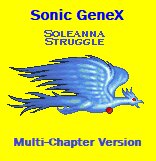 As Mephiles carried Heather high into the sky, Heather's body burst into flames! These flames spread out in a similar way to Iblis's flames before, surrounding Mephiles and Heather as they began to transform! A bright light covered the sky above, but it wasn't quite as bright as the light from Solaris. Still, the world around the light began to be distorted, and the sky became a dark shade of purple. As the light began to fade, everyone could see a giant creature above, that resembled Solaris! Rather than the previous, monstrous form of the original Solaris, this creature looked like a giant bird made of the same glasslike crystal. Blue flames covered its body, while a large red sphere was lodged in the creature's chest. It had giant, crystal talons, and its birdlike head had red eyes with green pupils, resembling the eyes of Mephiles. The creature let out a horrible screech, and everyone covered their ears. As Copter, Sonic, and Gemini looked up at the creature, they heard a familiar voice behind them. "Blast! I'm too late!" They turned to find Bucky staring up at the creature. Behind him were his experiments. All of Team GeneX was there, including Crash, Spiny, Zeke, and Whisk. Vortex and Zipp were beside Bucky. "Oh, sssshoot! Thissss doesssn't look good at all!" Vortex hissed. "Hmm... Maybe a real big rocket launcher can stop it?" Zipp suggested. Copter glared at Bucky. "You have some explaining to do, old man!" he shouted. Bucky nodded. "Yes... I owe you all that much. You see, a long time ago, I was living here in Soleanna. The previous king was my friend. During my stay, I met a wolf. She told me of Solaris, which the king had referred to as the 'Flame of Hope.' This wolf told me that I should take an ember from the flame, and do it quickly, for I would find something incredible to do with it one day. I didn't think much of that prediction, but I figured it couldn't hurt. I snuck in and took an ember from the flame. I hid it in my secret lab. I knew that the king was planning an experiment involving the flame, but shortly after I took that ember, I learned that the flame went out! I saved the flame until recently, when I decided to use it to make a phoenix. But something went wrong... I don't quite understand, but I triggered something in the flame, creating both that dark creature, Mephiles, along with Heather! Mephiles attacked me, and took his form from my shadow! But the incident frightened Heather, and she ran away! I knew something terrible was to come of this, so I made a few more experiments to aid me..." As he finished his explanation, he noticed Sonic was tapping his foot impatiently. "You sure know how to make a mess. Now what do we do?" he asked. Gemini looked up at the creature. "I think it's planning to destroy Soleanna! We have to stop it, fast!" she realized.