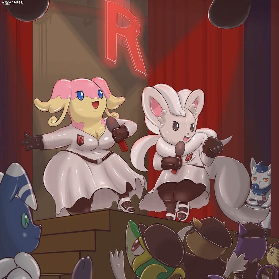 The Rubber Rocket agenda continues! The once Madeline--now Meowstic admins--got her cousin Chris and his best friend Ashley recruited! Transformed into Admin Amelia & Cassandra, an Audino & Cinccino, their hypnotic singing will now recruit plenty of rubber grunts for Unova...