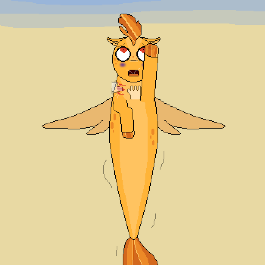 Whatever the case may have been before, Peach Harvest certainly isn't enjoying this now. With all her stored water having leaked out her gills, she's resorted to uselessly panting the air, her friend (possibly ex-friend at this point) still holding her in place and spreading one of her gills open, either oblivious to or uncaring of her situation as her vision dims and she feels her strength fading...