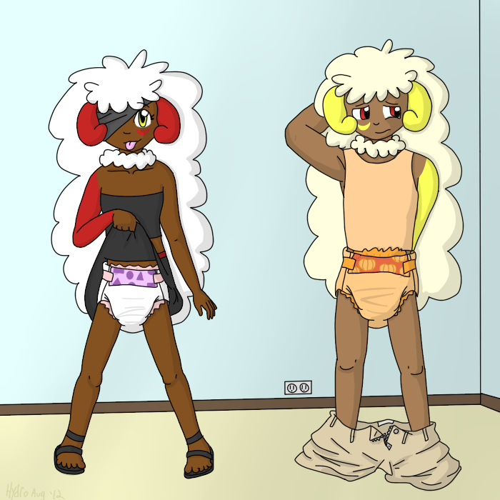 I don't even know how much more stuff I really owe Ren, he does so much for me... but this is a good start. Here we have his Whimsicott characters, Lipa (on the left) and Emile (on the right). They're diapered, Pokemon, twins, and both adorable. What more can you ask for? They were really fun to draw (despite how much I suck at sandals), and the first pic I was able to finish now that my hands are healed. Hopefully they stay that way and I'll have much, much more art soon!