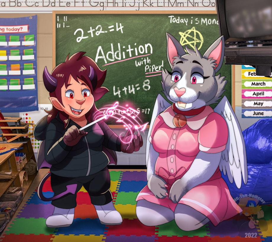 A brown bat stepped into the fairly small classroom. He seemed heavily concerned staring down at the hare. Piper was adjusting her desk as he approached her. She turned around, “Oh! Good evening, Kieran!” she smiled. Kieran folded his brown ears smiling,