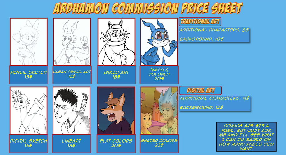 Made a new price sheet for myself. Been wanting to make a new updated one with recent art that's a lot more detailed with several examples of my art in different contexts. If anyone is interested feel free to DM me.