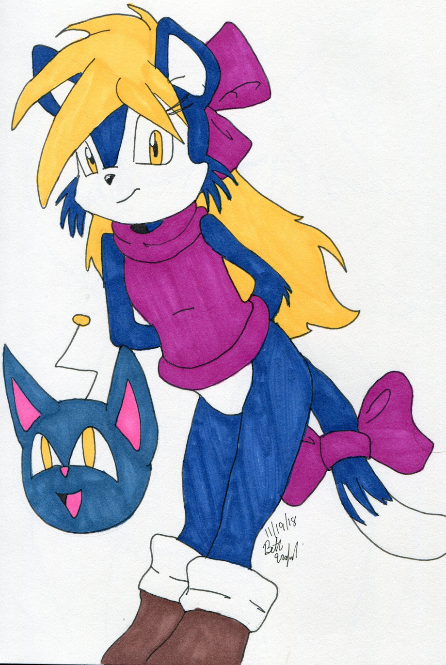 Here is a revamp of another Sonic OC I made back in my high school days. And since I was a Sailor Moon fan back then, I had to give her a Luna ball.. except this one is called a Kitty K