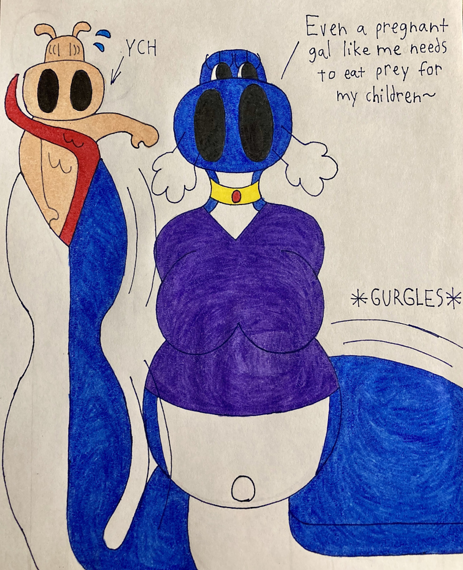 When Glare's pregnant, she will always have a craving to devour a bunch of prey, and trust me, she won't hesitate, but she'll be quite seductive to her food as they go down slowly in her.