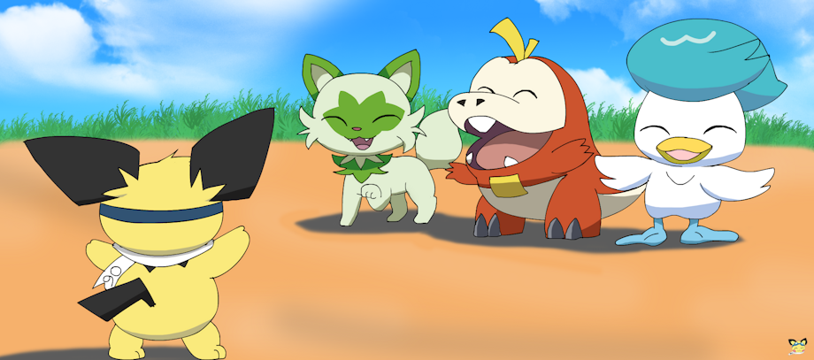 The adventurous Sparks finds three Pokémon that welcome him to the new region. Here, I’m sure he’ll make new friends and memories, and maybe find new ways to make trouble as he is used to x3