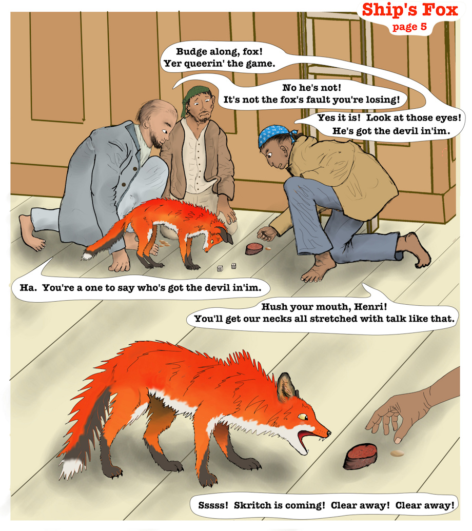 Tad confused here on what's going on panel 3, is the fox scared that he accidentally made a guy jump of boat or because all the yelling?