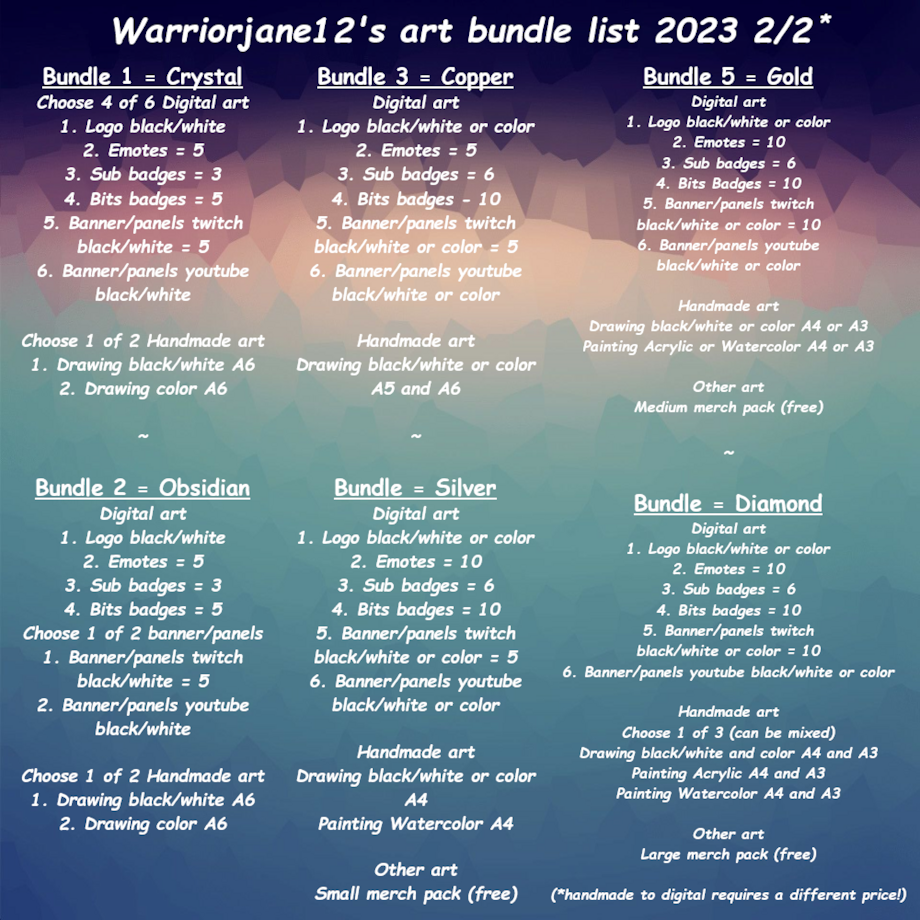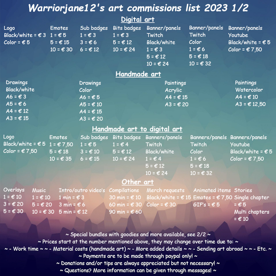 Here you can find my new pricelist and bundles for 2023! Do you want some art? Send me a message!