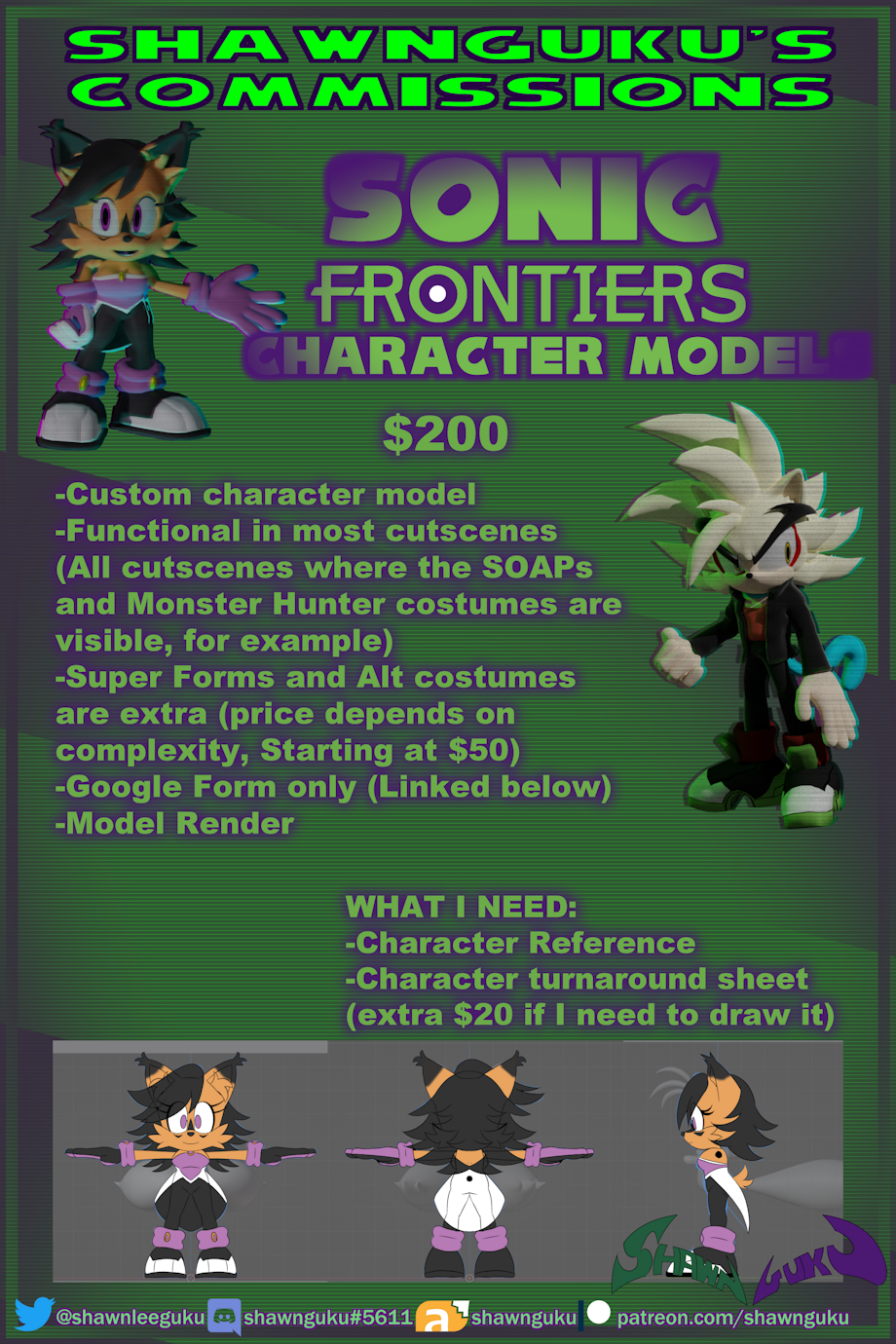 Taking commissions for Sonic Frontiers character models. I'll only be taking two a month for now.