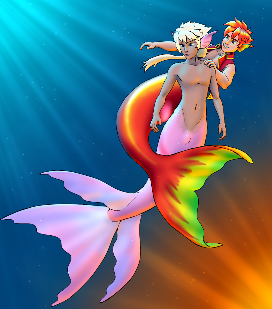 In this years Mer-Santa exchange in the Mermenclub group on DeviantArt. I got to illustrate two of characters of @DisneyFan365 Felix with the red tail and Nicholas with the pink tail. While I only needed to draw one character, it's always nice to have friends around. The orange glow is coming from an underwater lava flow. There's a party down there, and Felix is checking up on Nicholas, as it seemed like he was being a little distant. I think he's just finding the lava a little hot.