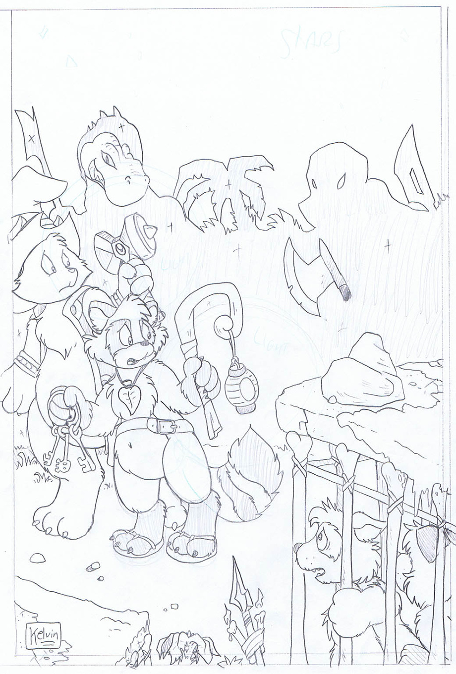 Update: Did a lightbox trace to get this ready for ink. Shortened Tengoku's legs slightly. Changed the lantern to be more accurate to the real thing.