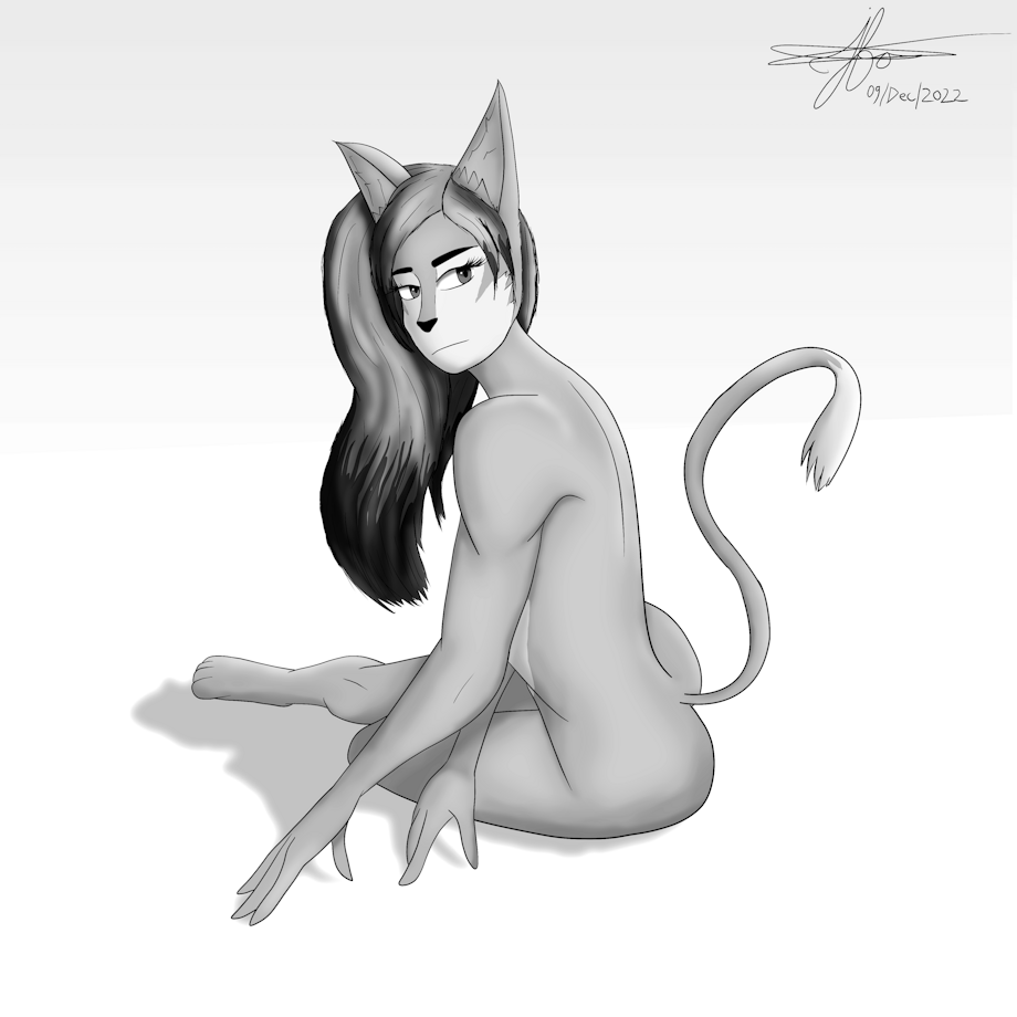 A drawing of my OC cat I did using the app Clip Studio Paint.