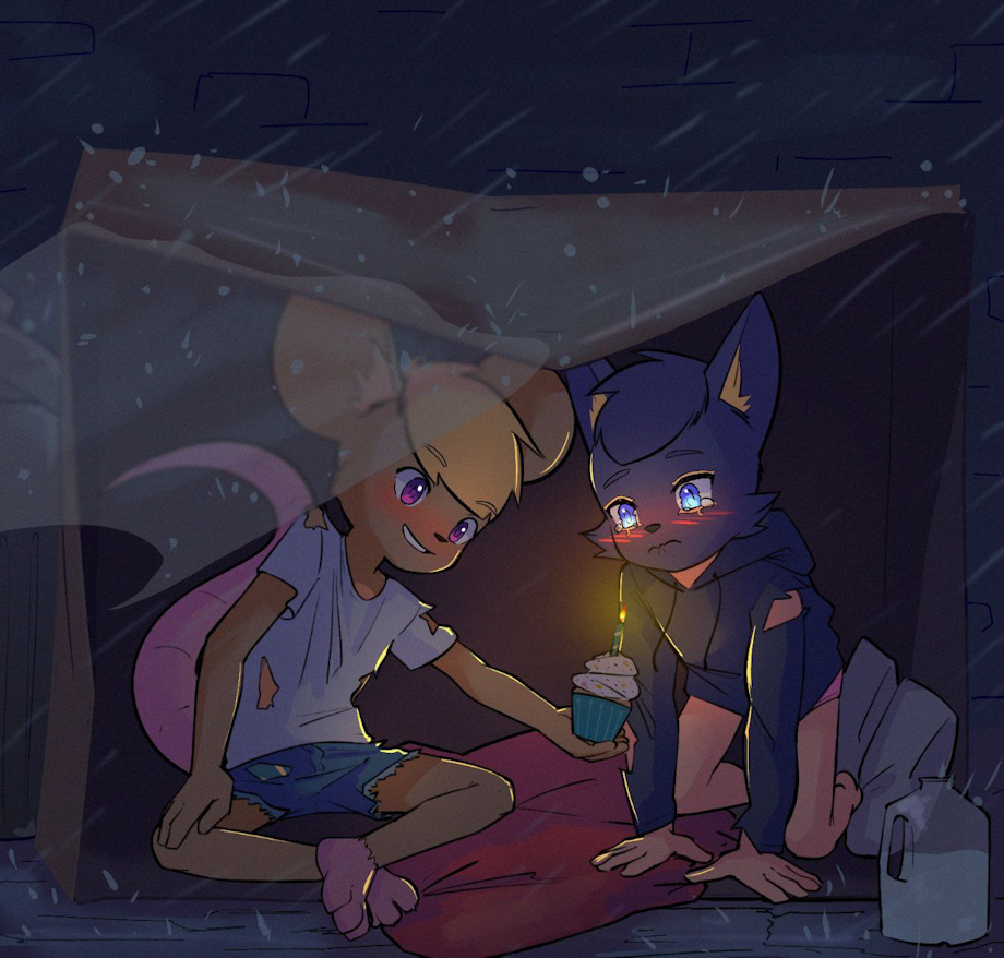 Ratthew and Octavian had a very troubled youth, spending a time on the streets before finding their forever homes. The stinky lil' rat saved up for weeks from odd jobs to buy his friend a fresh cupcake from the nice bakery for his birthday.