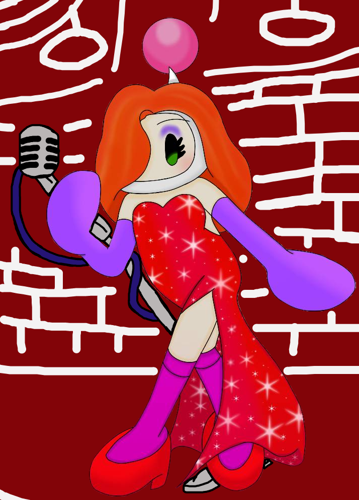 I did the request earlier this month to someone on DeviantArt, so i took out the background and keep the White Bomberman dressed as Jessica Rabbit the same, but added the lounge background and microphone to that.