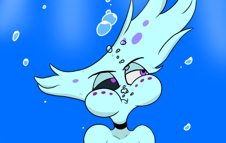 Pic of Hazbin Hotel's Angel Dust just holding it underwater. Really don't see much underwater pics of he out there..