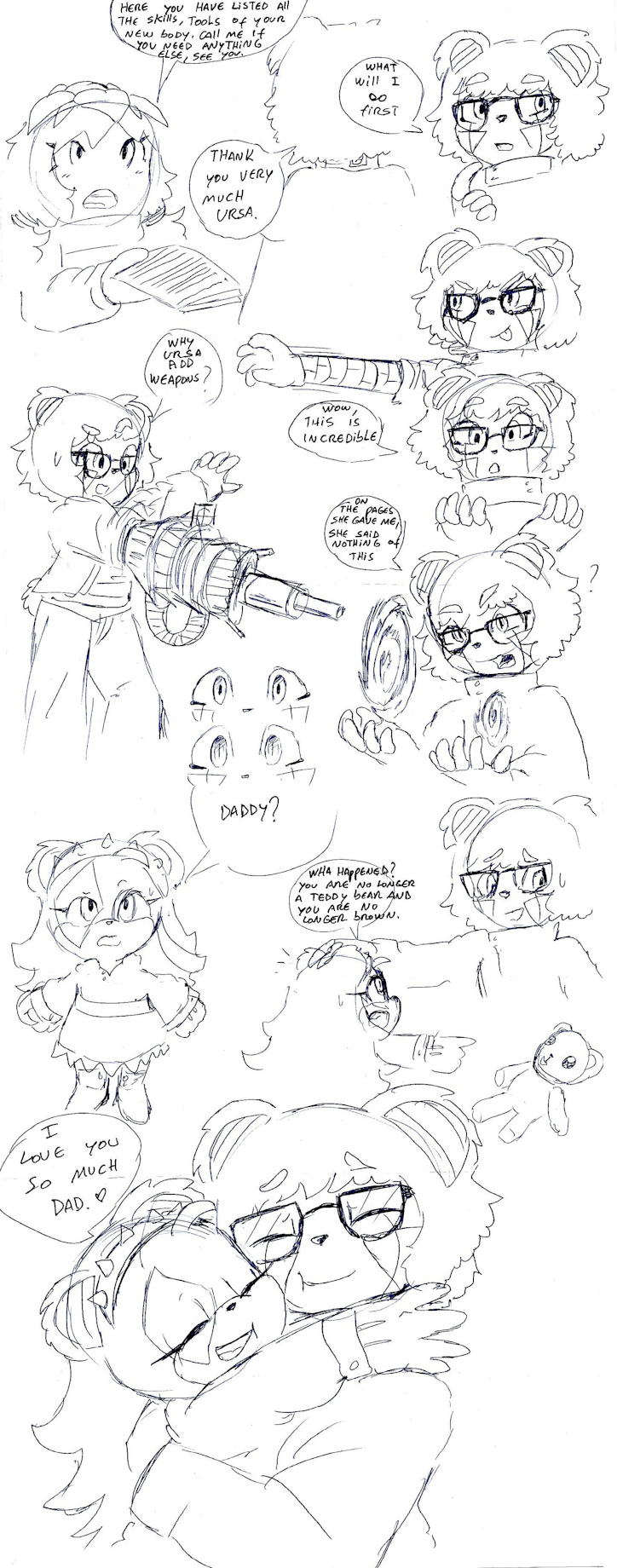 I wonder, did Ursa manage to transfer his soul to the machine? Or is it merely the teddy bear piloting the suit? I wonder if she equipped it with reproduction capabilities like with AI.