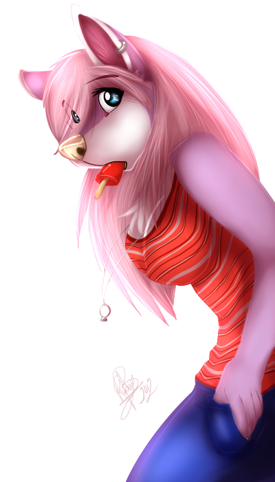 You seemed a little shocked with that popsicle in your mouth based on the eyes and your expression, and I as well think the red color matches your shirt. That is also a nice little necklace you got there as well. :)