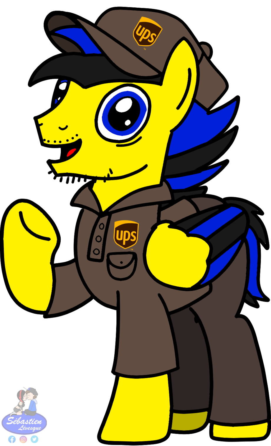 Since starting this tuesday at 3:00 am, I'll be doing a trial run for work at the UPS in Blainville. To have a little fun, I decided to draw PonySeb 2.0 wearing UPS uniforms.
