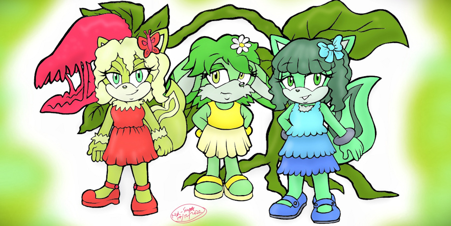 These triplets are Autumn, Spring, and Summer, they're custom-made characters commissioned by