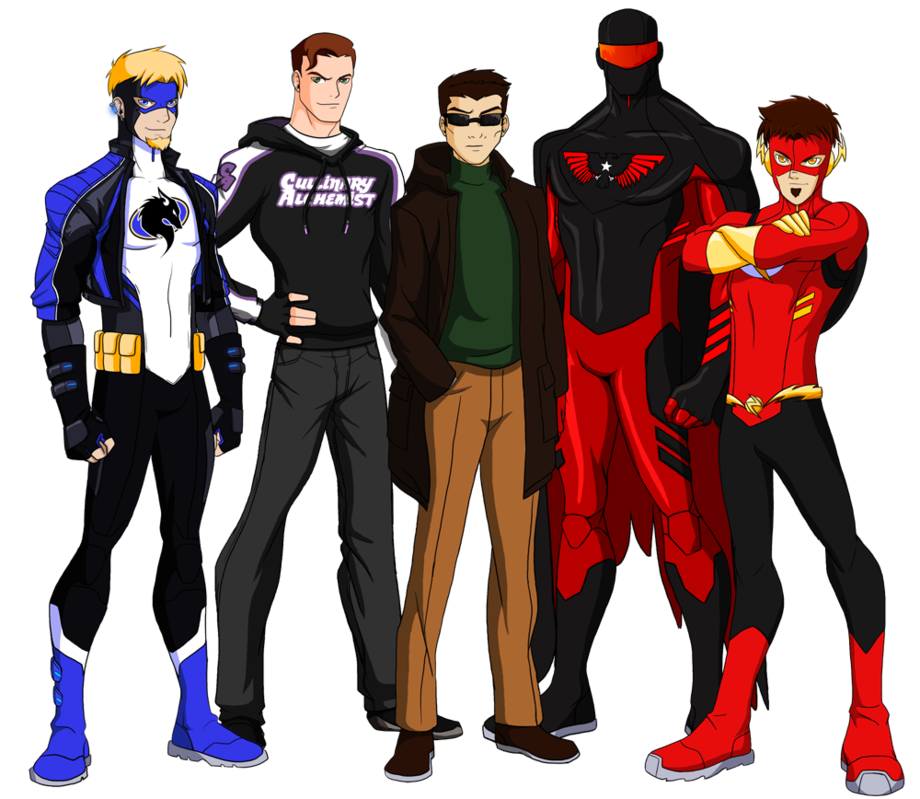 Ok, I tried to doing a very long description of each character several times, something always seems to manage to screw up before I can hit save so you guy get the short version instead. From left to right we have Azure Fox, Chad, Lexicon, Scarlet Raven and Spark.