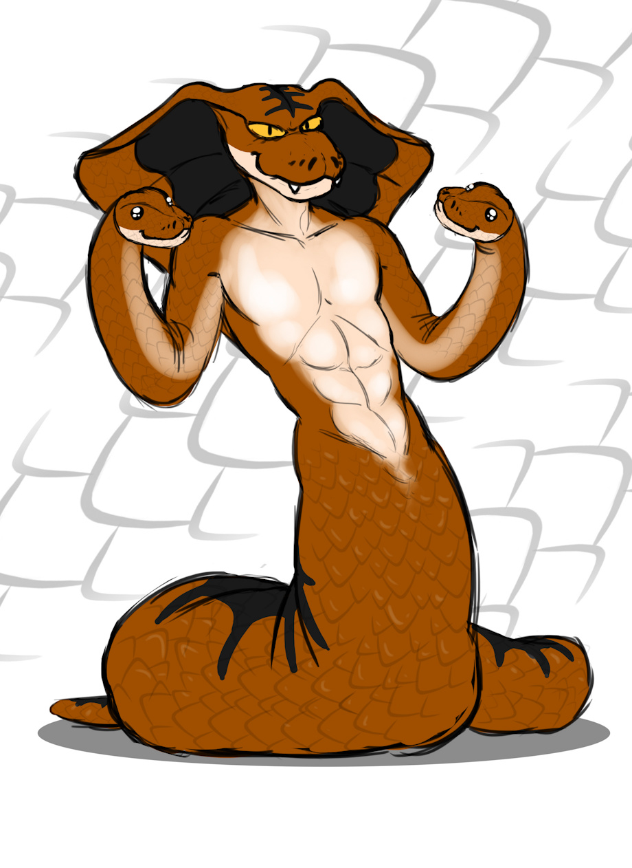 A commission for AaronScales who wanted to see his character Arashi, part of my Kid Quicksand universe, in his full snake form, which is just adorable honestly. Yes, his arms are snake arms, with their own snake heads. I believe they have their own personalities too.