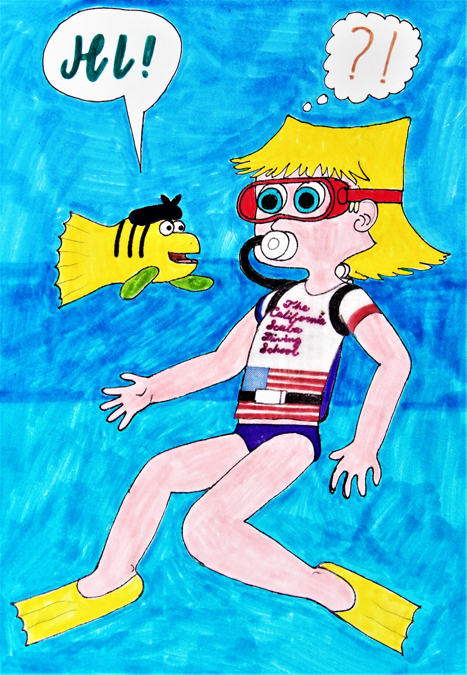 Another requested drawing for LincolnKaiLanLoud01 ... This time he asked for Lori Loud from The Loud House in the middle of a training session at the California Scuba Diving School when she encounters a fish version of Bobby Santiago. Unfortunately I never watched the series, so I don't know who this Bobby Santiago is. I mean, is he her boyfriend, neighbor, WHAT? 🤨 Could someone please tell me?