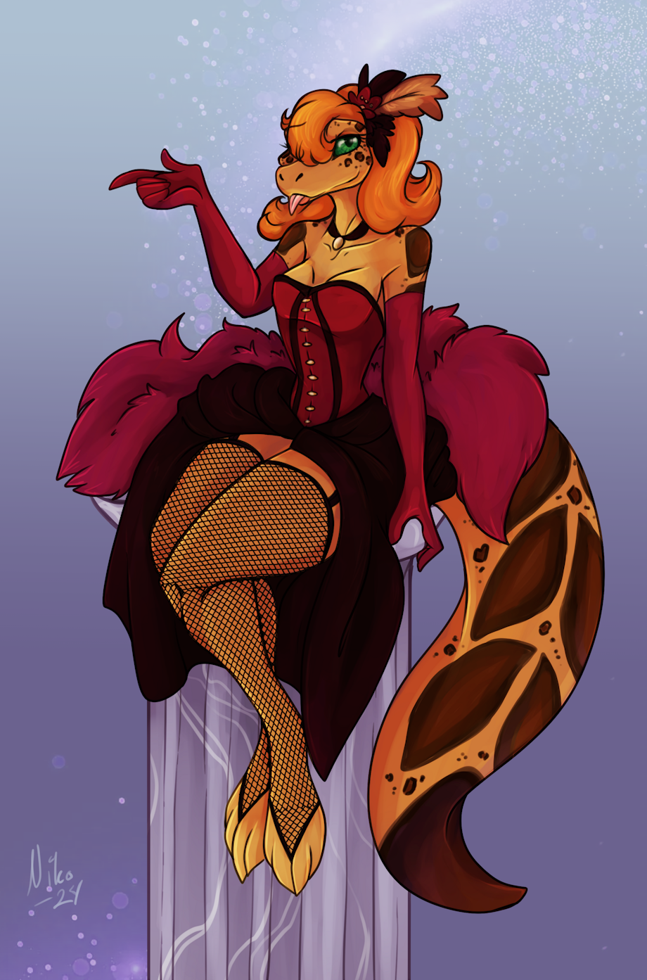 I mean, how many cookies can one man even eat, anyway? He should be glad she tried to do something special for him! She looks super cute in that slinky Santa get-up, too, and I love the sparkly ornaments dangling from her fingers and the sparkly bit of eye shadow to go with them. Your coloring on this is just gorgeous, too! She's a beautiful girl, and sounds like she's a hell of a lot of fun to hang out with, too!